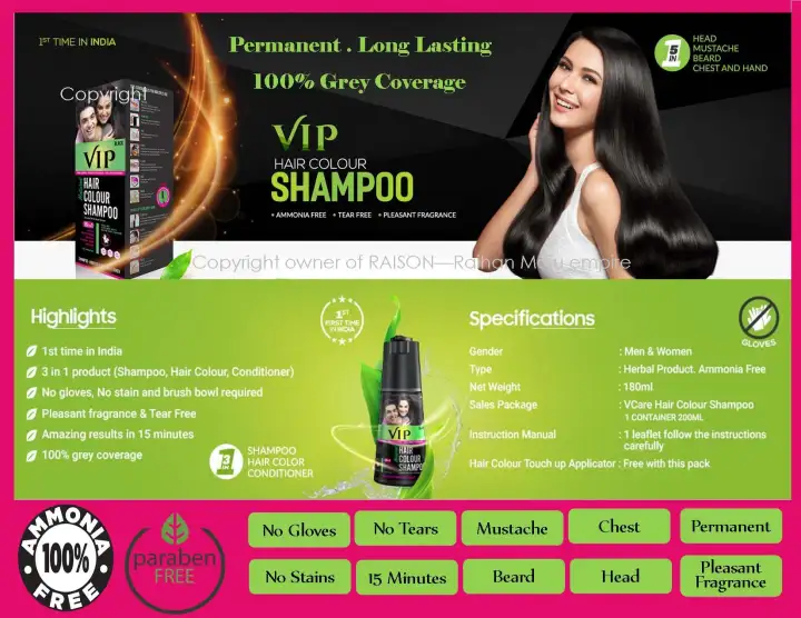 Vip Black Hair Colour Shampoo 180ml Lazada