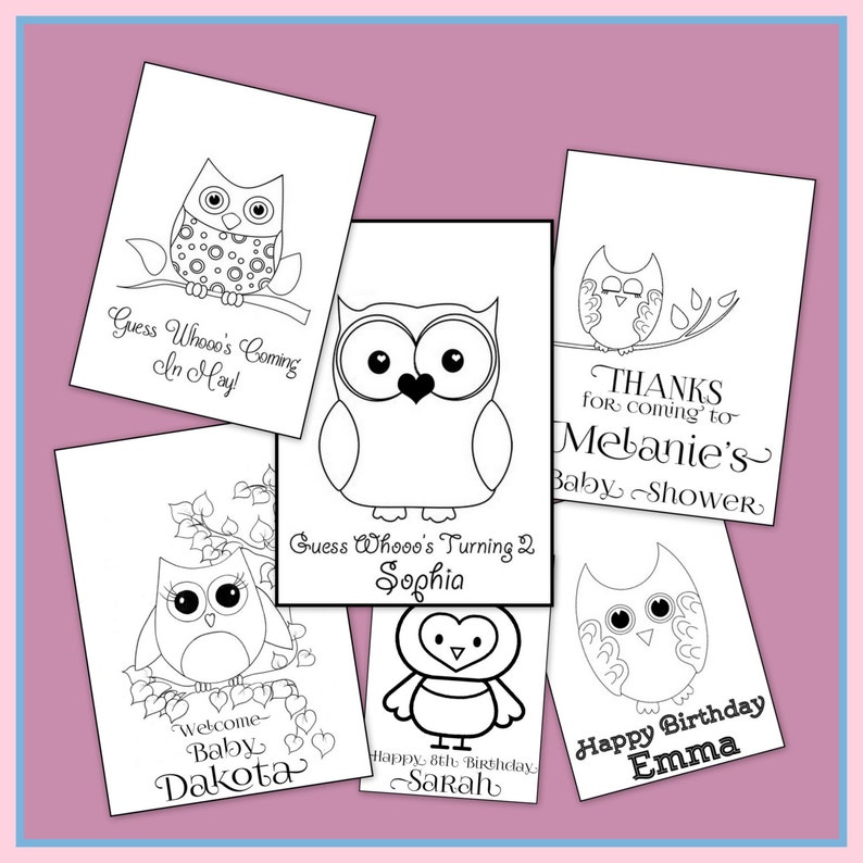 Personalized Owl Coloring Book Baby Shower Or Birthday Party Etsy