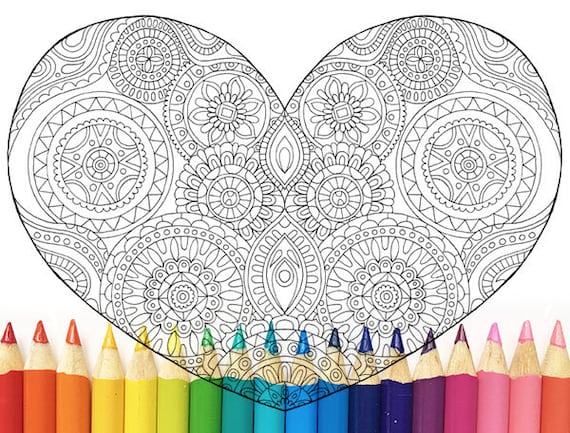 Mandala Heart Adult Coloring Colouring In Coloring Pages Etsy